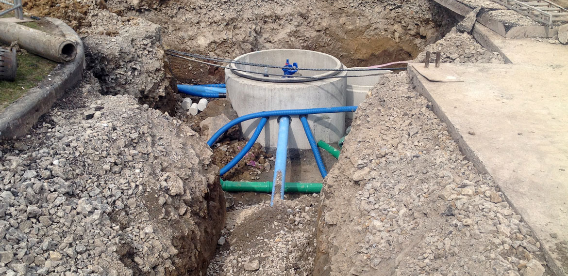 Leitungsgräben für Kommunikation, Strom, Wärme, Gas und Wasser, von der Transportleitung bis zum Hausanschluss. Mehr erfahren ...